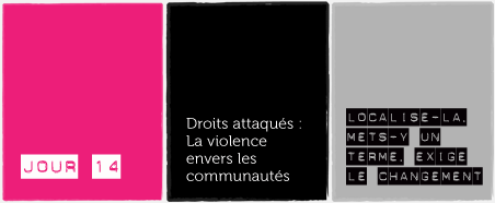 Jour 14 | Droits attaqués : La violence envers les communautés | Localise-la. Mets-y un terme. Exige le changement