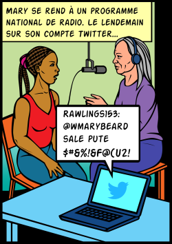 Quel que soit leur sujet, les femmes qui écrivent dans un blogue ou pour un journal reçoivent une quantité disproportionnée de commentaires haineux et de menaces. Les femmes qui parlent de sujets liés d'une façon ou d'une autre aux femmes ou qui touchent aux sujets dominés en apparence par les hommes, comme les jeux de hasard ou la politique, y sont encore plus exposées.