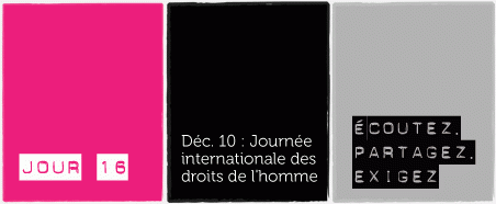 Aujourd’hui, nous célébrons et réarffirmons nos valeurs et nos principes communs à l’occasion de la Journée des droits de l’homme. Tout au long de la campagne de 16 jours, Réapproprie-toi la technologie! a donné à des femmes et des filles de différentes régions du monde l’occasion de parler de leurs expériences sur la façon dont l'Internet est devenu un lieu privilégié pour l'exercice de leurs droits et libertés fondamentaux : expression, information, éducation, vie familiale, santé, travail et pleine participation à la vie publique, culturelle et politique et plus encore.