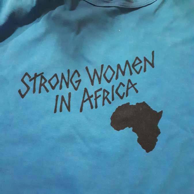 In the early 1990’s, these t-shirts were made for Rape Crisis Cape Town Trust. Established in 1976, it is the oldest organisation in South Africa supporting the recovery of survivors, seeking justice and making change in communities.  The rate of sexual violence in South Africa is still among the highest in the world.  These t-shirts sent out a message that although misogyny and sexual violence against women were (are!) endemic, women are strong, capable and created supportive, diverse and inclusive communities to fight sexual violence. Along with the t-shirt, South African guitarist Edi Niederlander co-wrote a song called “Strong Women in Africa” which speaks to the endemic reality and resistance to sexual violence by women.